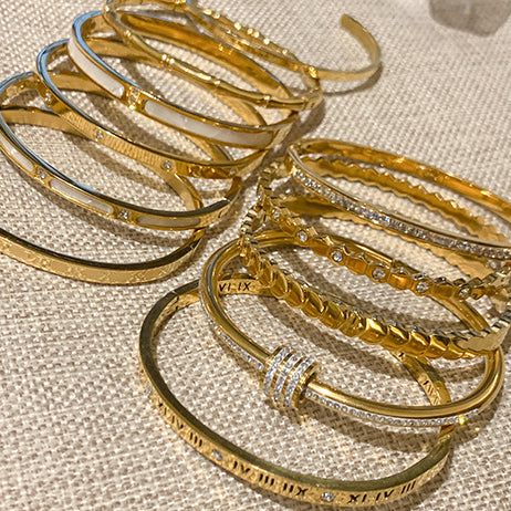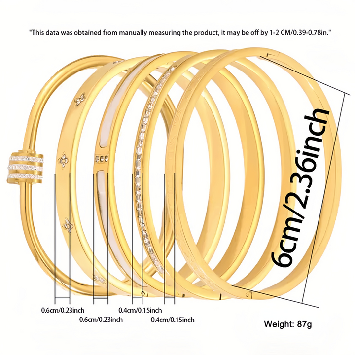 Elevate your style with this elegant 5-piece stackable bracelet set. Designed with a minimalist, timeless look, each bracelet can be worn individually for a sleek vibe or stacked together for a bold statement.