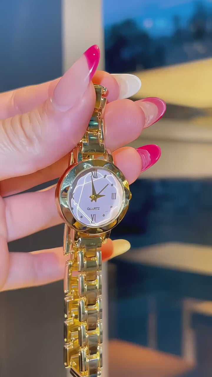 A stylish vintage-inspired quartz watch featuring an elegant, petite round dial, available in multiple colors—perfect for everyday wear.