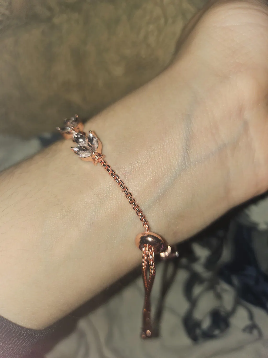 This refined women’s quartz bracelet watch, adorned with leaf-shaped crystals, transforms your wrist into an exquisite piece of jewelry.