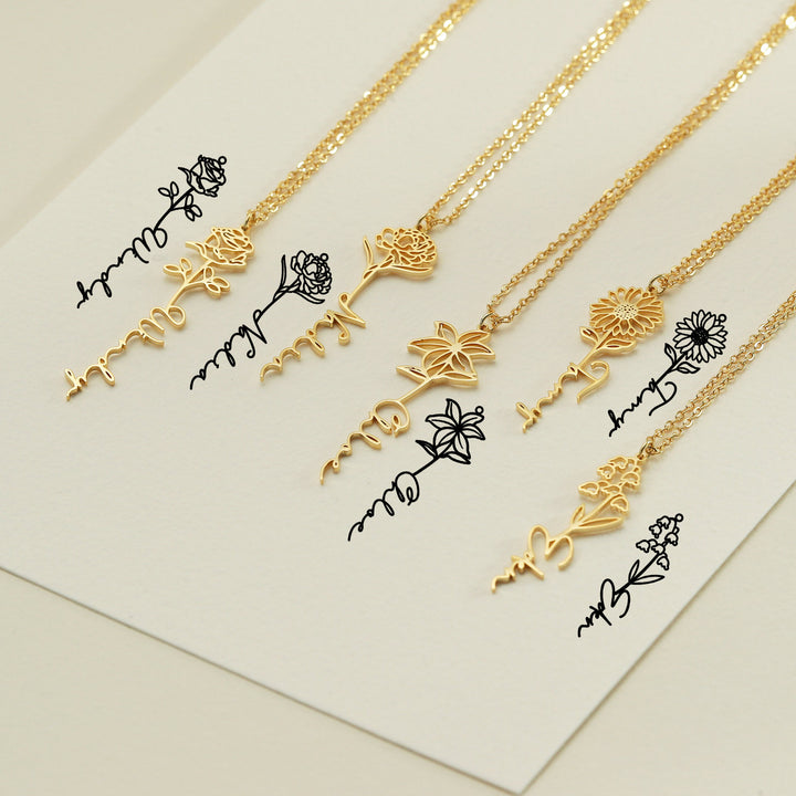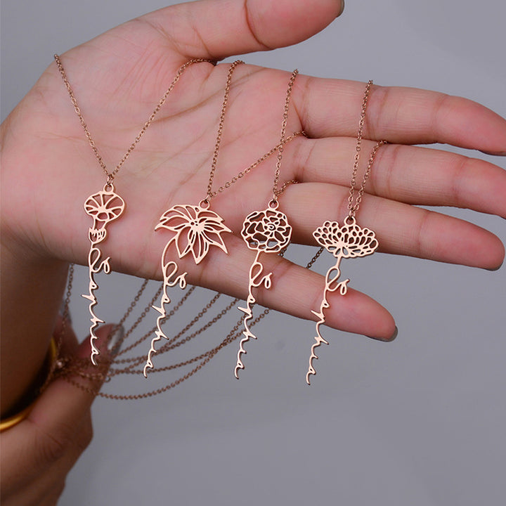 Personalized Birth Flower Name Necklace