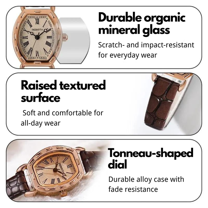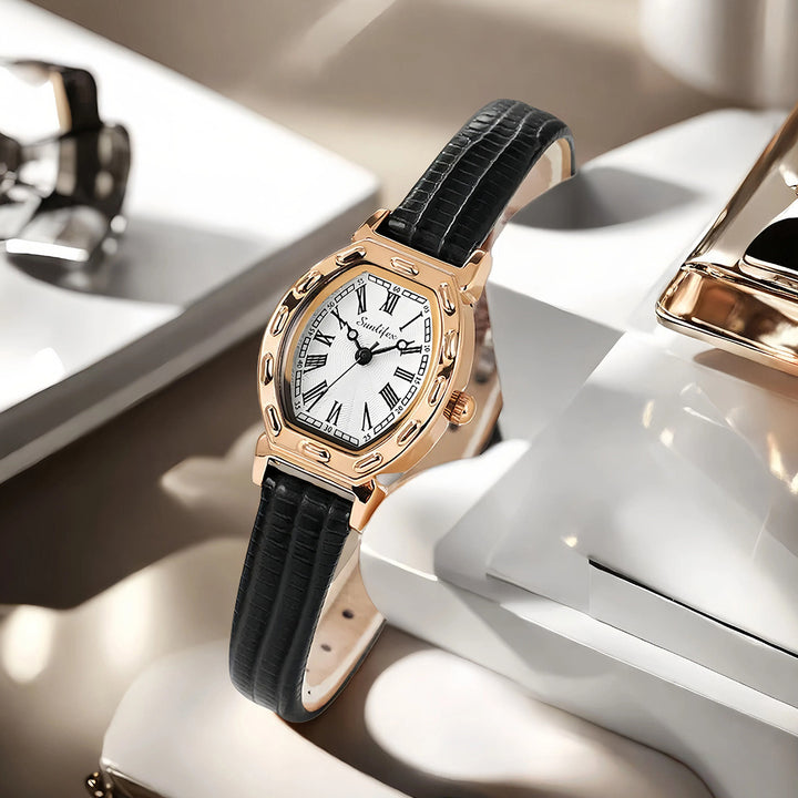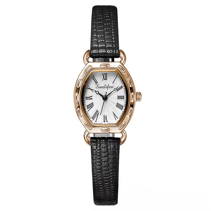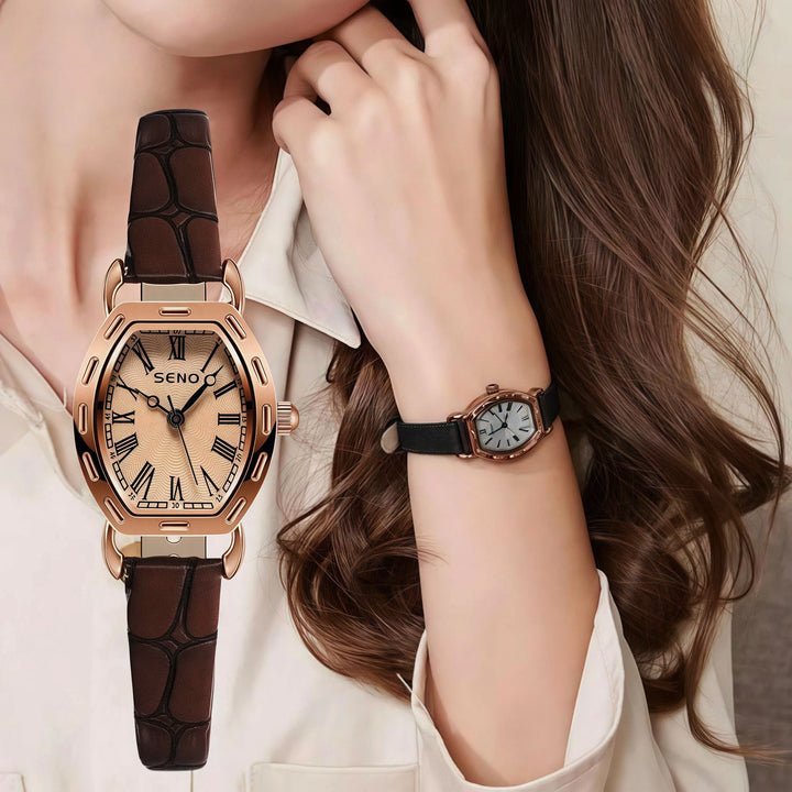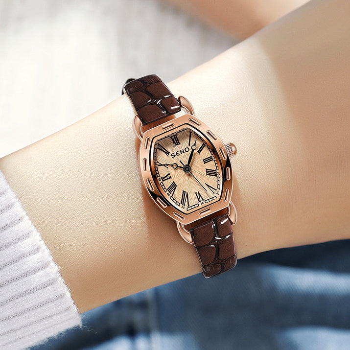 This elegant watch features a retro-inspired barrel-shaped case. Small, delicate, lightweight, and stylish—perfect for everyday wear.