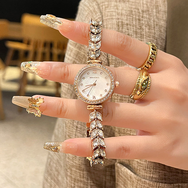 Elegance meets sparkle with this mermaid-tail watch. Gold-plated case and bracelet shine with sparkling crystals. Reinforced glass and splash-resistant design make it perfect for everyday wear.