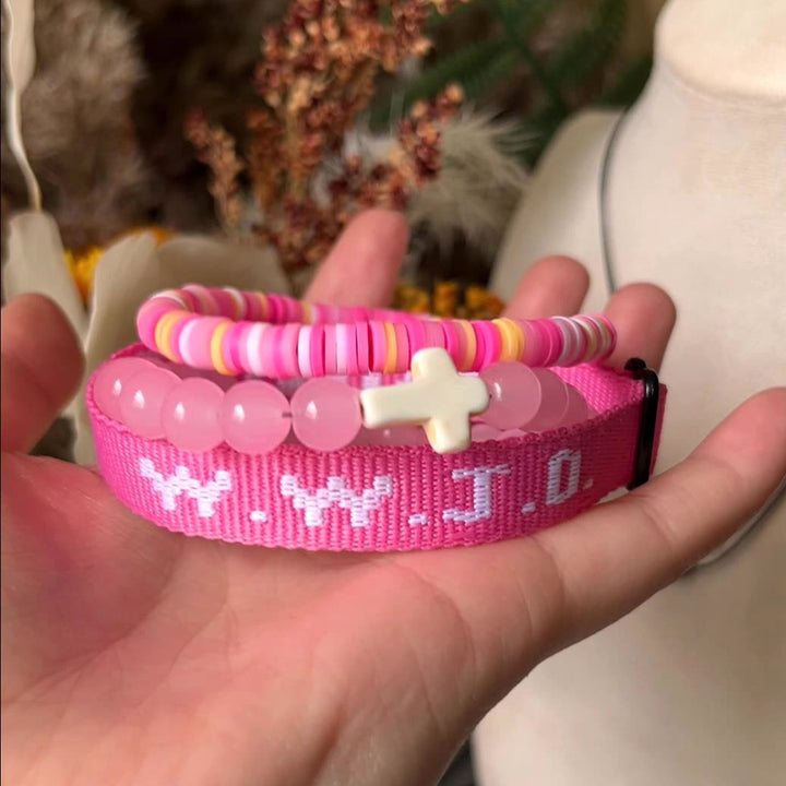 Elevate your style and keep an inspiring reminder close with this WWJD Beaded Bracelet Set. Featuring the iconic “WWJD” letters and a cross charm, these bracelets are perfect for both men and women.